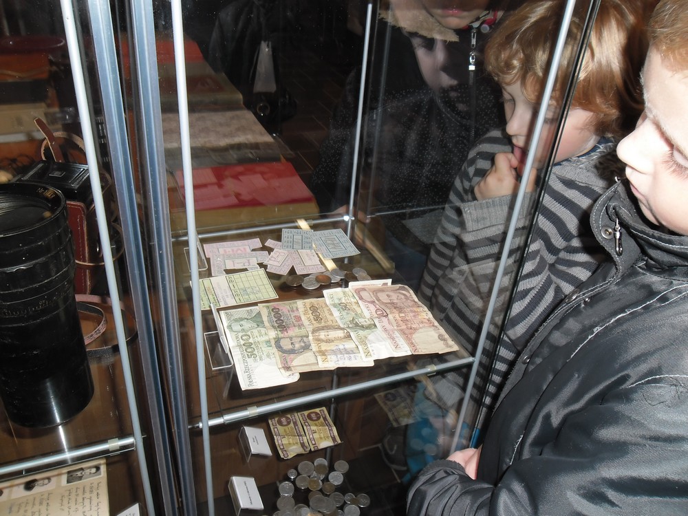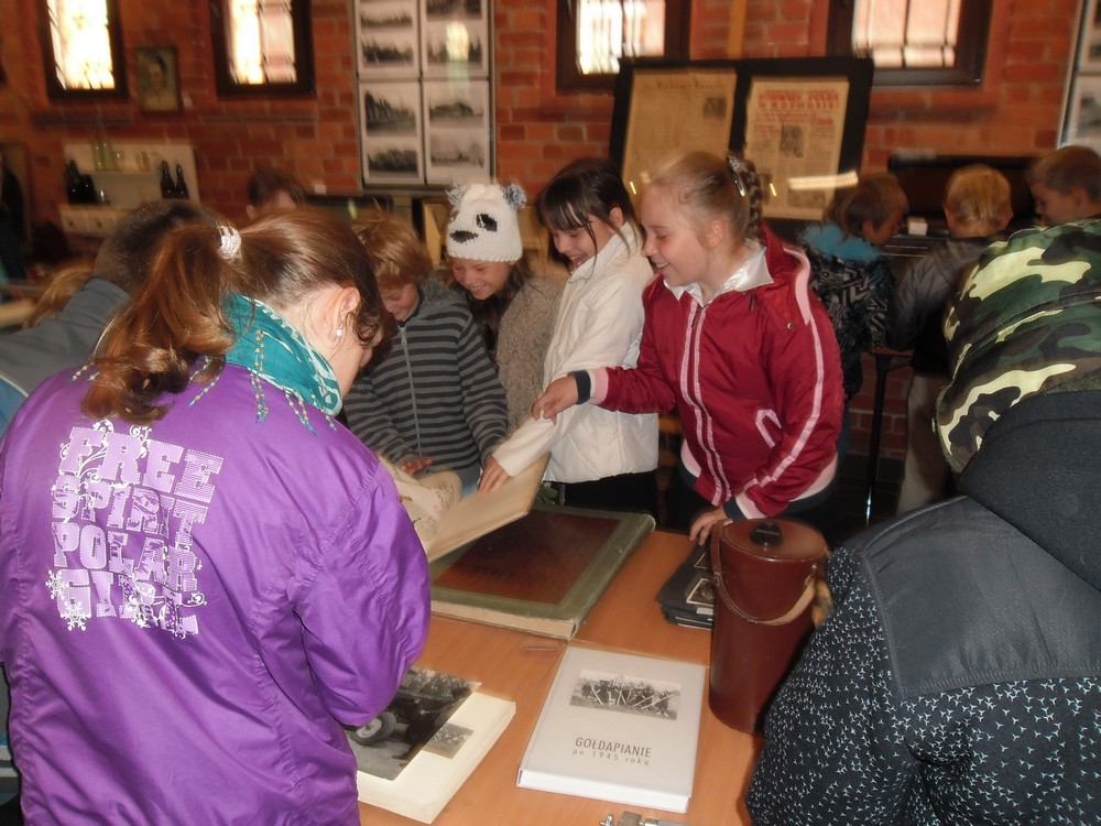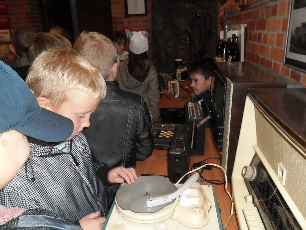 11 X 2013r. uczniowie klasy IIc z Jedynki udali się do Muzeum Ziemi Gołdapskiej im. Mieczysława Ratasiewicza. Celem zajęć było przybliżenie uczniom dawnych czasów związanych życiem Polaków w PRL-u. Pani kustosz Aleksandra Ratasiewicz wyjątkowo ciekawie opowiadała o zgromadzonych eksponatach, tłumaczyła , że na żywność obowiązywały kartki, a po meble i sprzęt trzeba było stać 2 tygodnie w kolejce. Wiele radości wzbudził wśród dzieci drewniany wózek i tornister, a prawie wszyscy sprawdzali działanie gramofonu i maszyny do pisania. Uczniowie z dużym zainteresowaniem oglądali przedmioty i zadawali wiele ciekawych pytań, na które otrzymywali wyczerpujące i fachowe odpowiedzi. Zajęcia w muzeum były ciekawą zabawą, a przy okazji świetną lekcją historii.
