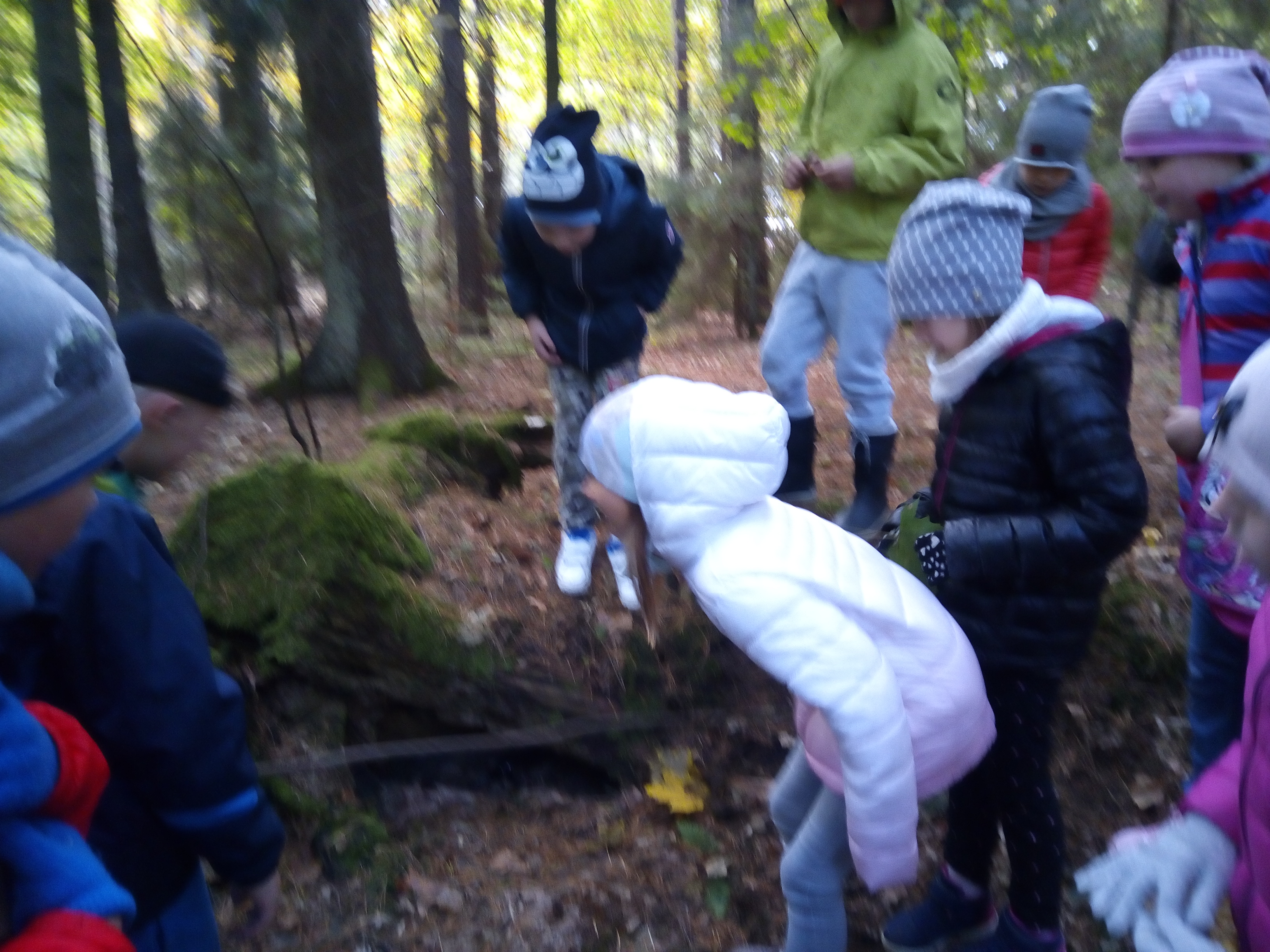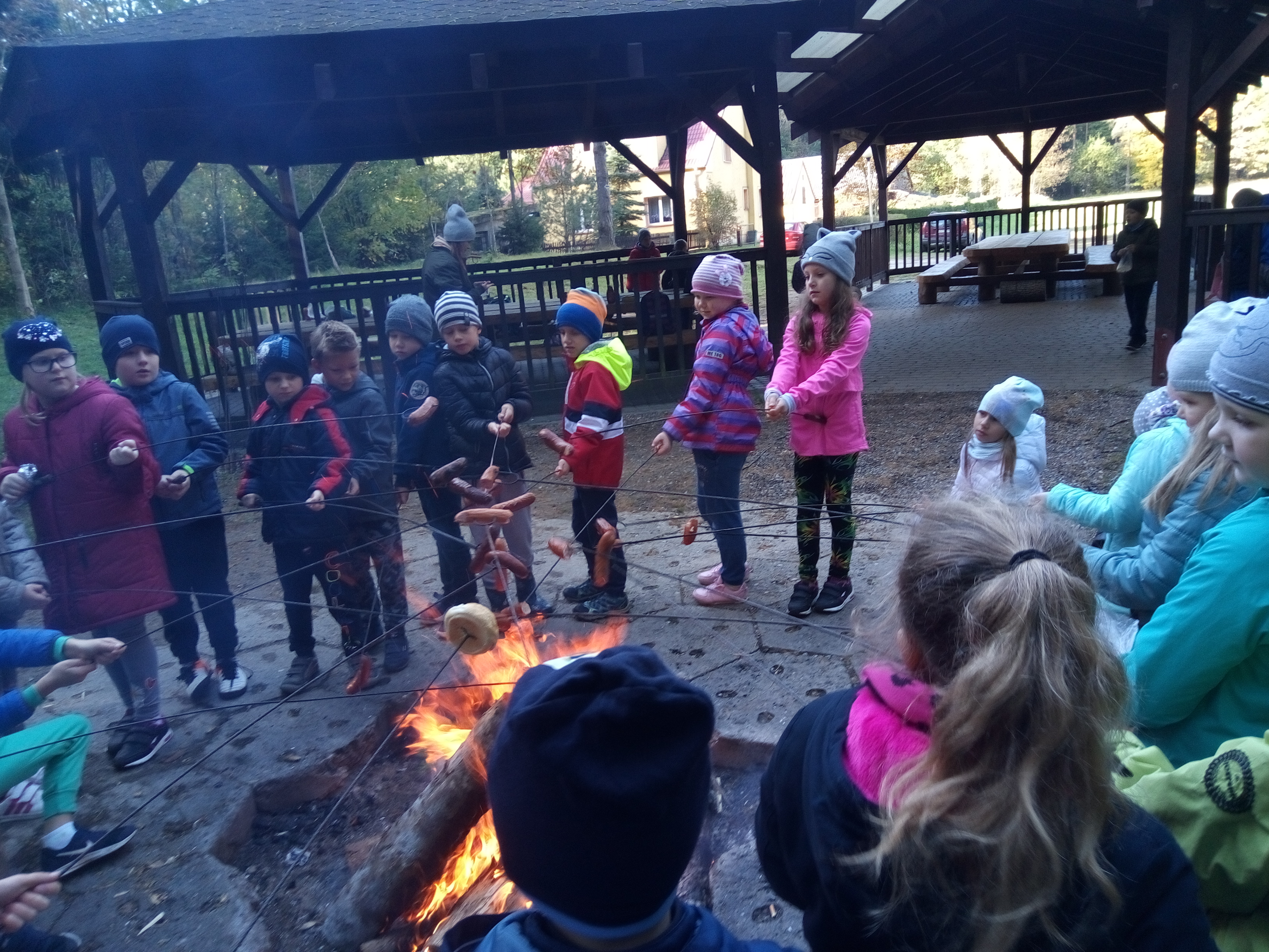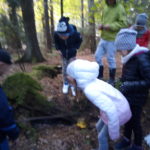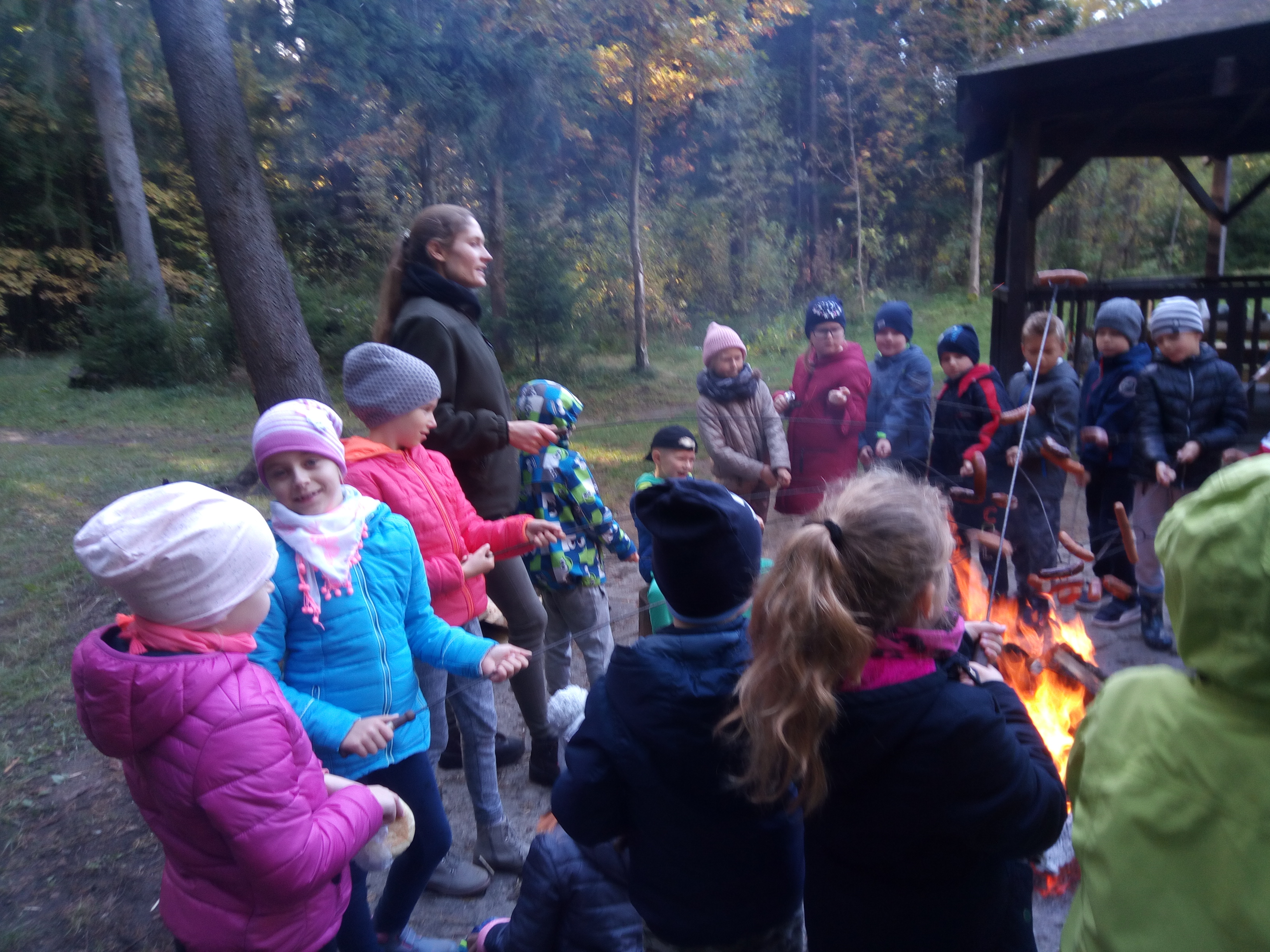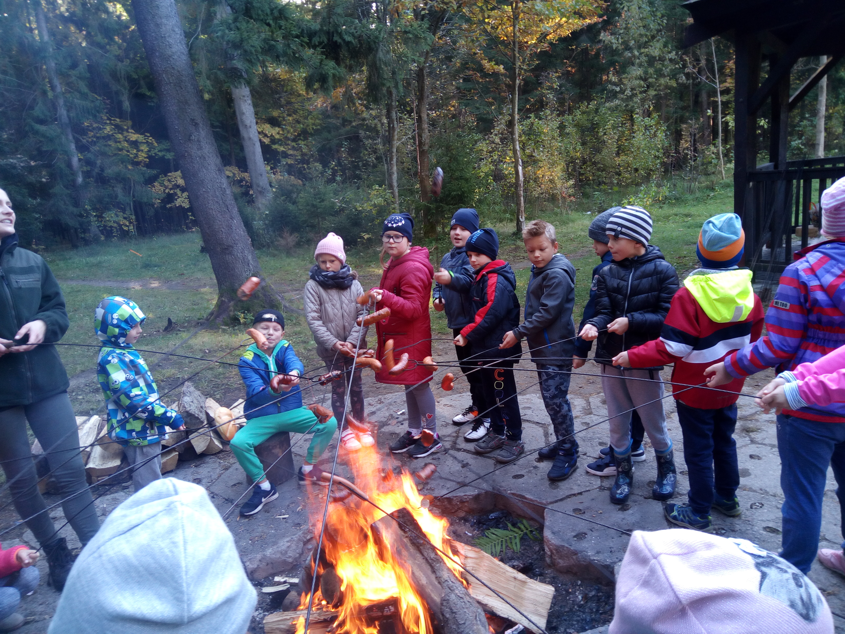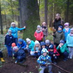 8 października 2018 r. klasy I c i II c z Jedynki pojechały na wycieczkę do lasu w ramach realizacji programu przyrodniczego „4 pory roku w lesie Kumiecie.” Las przywitał nas piękną, jesienną pogodą. Na polance czekała pani leśnik Agnieszka Iber z Nadleśnictwa Gołdap i zaprosiła uczniów na spacer. Dzieci obserwowały zmiany zachodzące w przyrodzie jesienią. Uczniowie z dużym zainteresowaniem słuchali, a następnie rozpoznawali rośliny zielne, krzewy i drzewa po liściach, nasionach i korze. Najciekawszym punktem wycieczki było spotkanie pod najstarszym drzewem – okazałym świerkiem, który ma około 200 lat. Ogłaszamy konkurs na imię dla tego drzewa. Dzieci słuchały odgłosów lasu. Spotkanie zakończyło się ogniskiem, pieczeniem kiełbasek i słodkim poczęstunkiem, który ufundował tatuś Piotrusia pan Daniel Jejer. Uczniowie zabrali „skarby lasu”: szyszki, listki, patyki i żołędzie.
