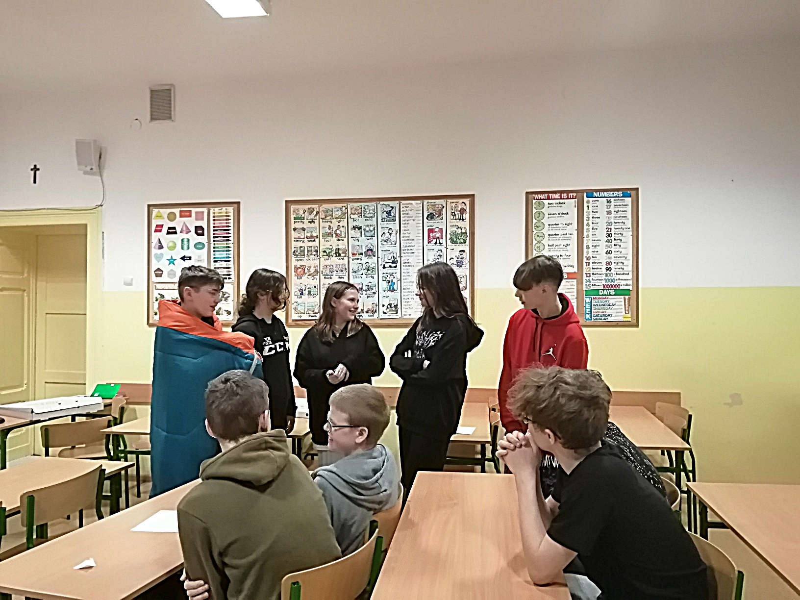 Z 24 na 25 marca 2023 roku chętni uczniowie klas VII a oraz VIII d przybyli” do szkoły na nocną zmianę. Nie tylko dla zabawy, ale głównie dla nauki, bo przecież egzamin tuż, tuż. Co prawda siódmoklasiści mają jeszcze rok, ale skoro chcieli, to i byli na powtórce nocą.