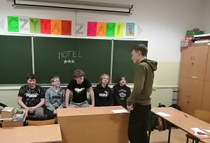 Zaczęło się tradycyjnie od zamówienia pizzy i zabawy pod nazwą „Wielbłąd”, tworzącej bardzo pozytywny nastrój. Czas oczekiwania na kolację umiliła uczniom sztafeta ortograficzna