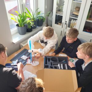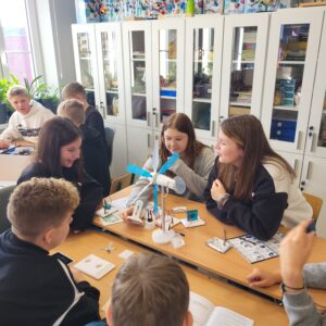 Największą atrakcją były jednak zajęcia praktyczne. Uczniowie przeprowadzili eksperymenty z wykorzystaniem modeli OZE, w tym nowo zakupionych zestawów edukacyjnych. Dzięki temu mogli własnoręcznie obserwować przemiany energii oraz samodzielnie wytwarzać energię elektryczną. Takie doświadczenia nie tylko pogłębiły ich wiedzę, ale również zwiększyły świadomość na temat odpowiedzialnego korzystania z energii i jej odnawialnych źródeł.
