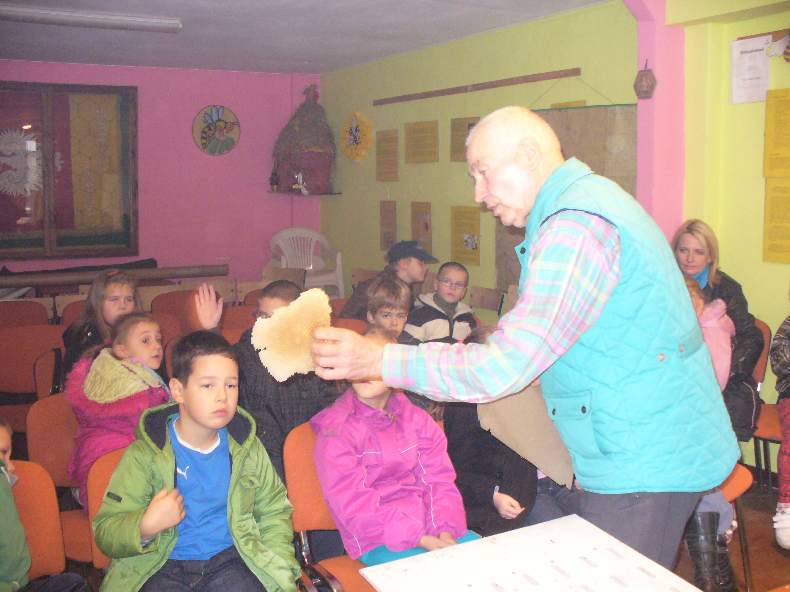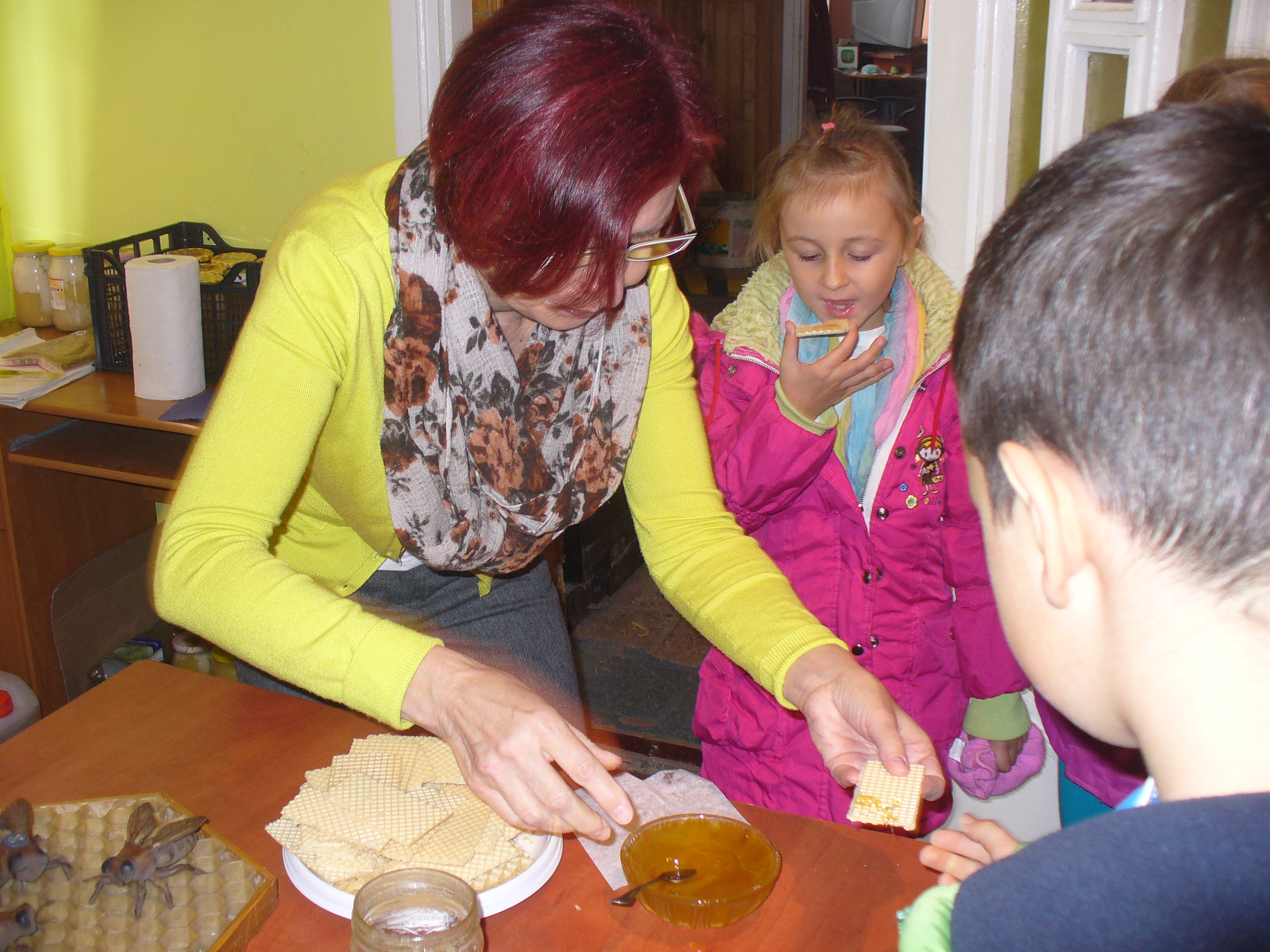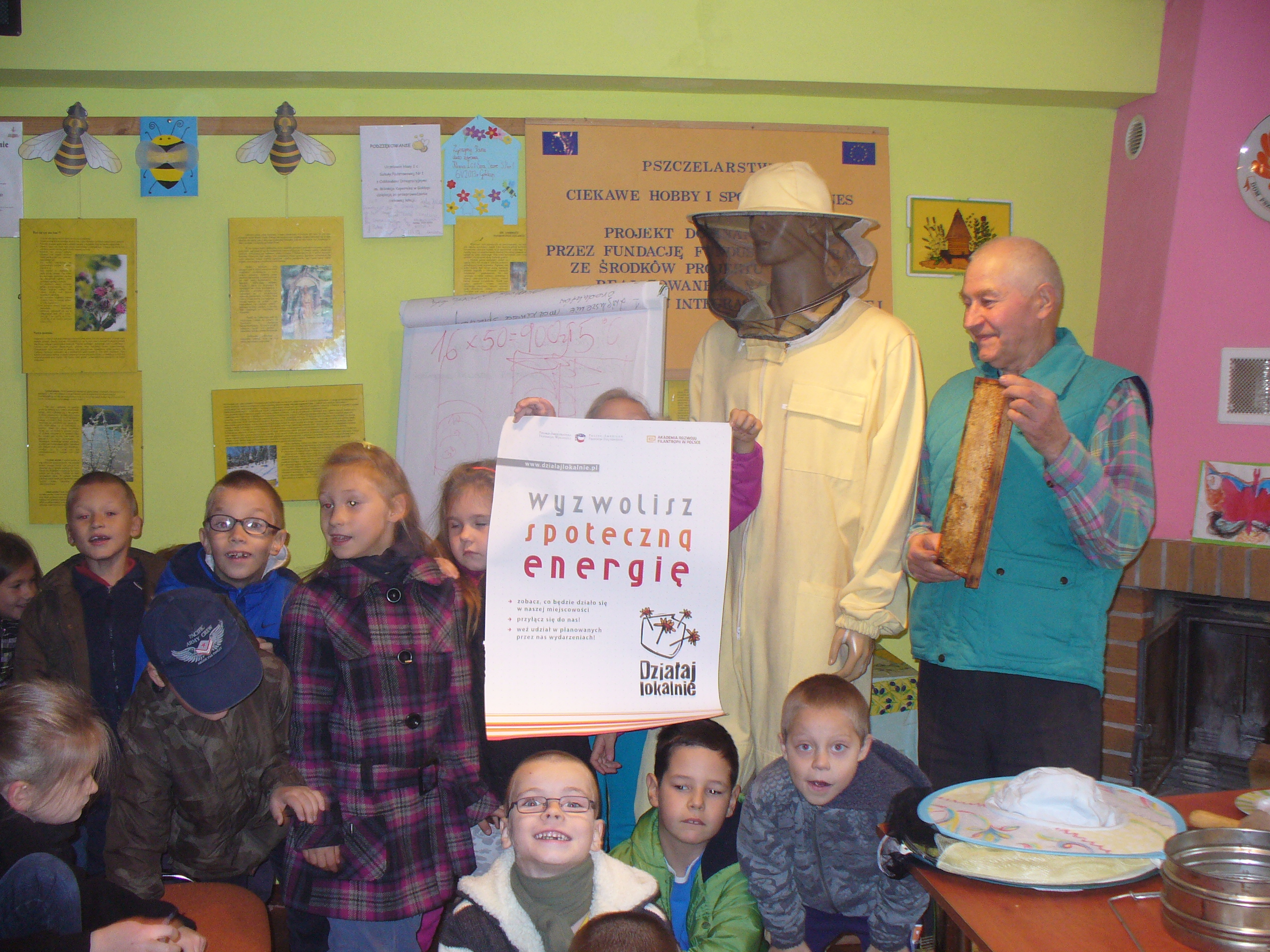 Uczniowie z SP1 gościli w siedzibie Gołdapskiego Stowarzyszenia Pszczelarzy. O życiu pszczół, roślinach miododajnych i pracy pszczelarzy w interesujący sposób opowiadał p. Józef Giełażys, zastępca prezesa GSP. Dzieci mogły obejrzeć ul z ramkami i plastrami, odzież i sprzęt pasieczny. Poznały produkty pszczele – pyłek pszczeli, wosk pszczeli, propolis. Na zakończenie zajęć zaproszono gości na słodki poczęstunek – wafle z miodem i ziarenka pyłku.
